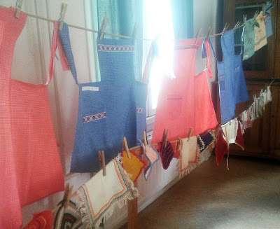 Moni käsityö palveli kodin tarpeita. Pölyliinoja äidin pikku apulaiselle, ajalta ennen talouspaperia ja viledaa: